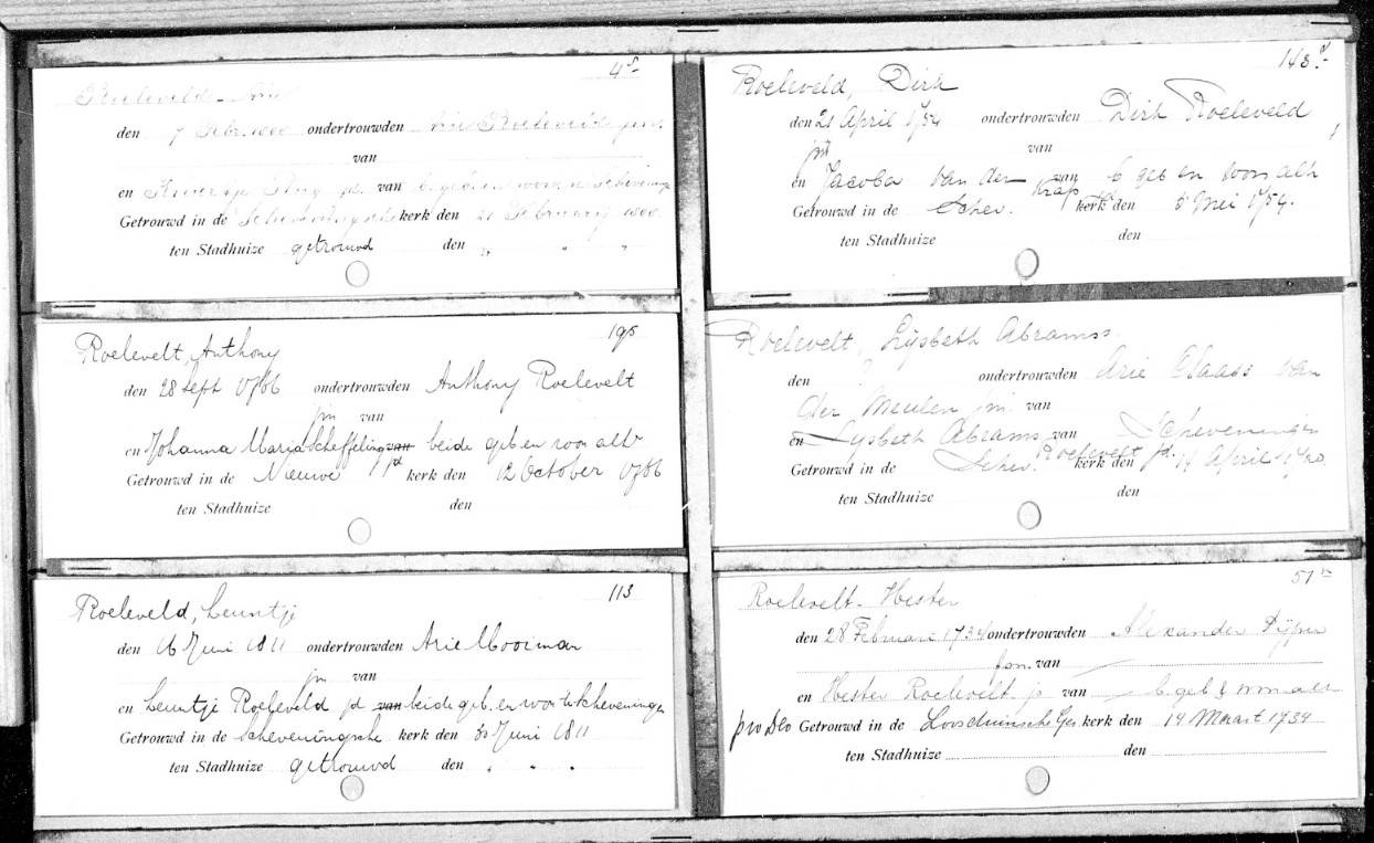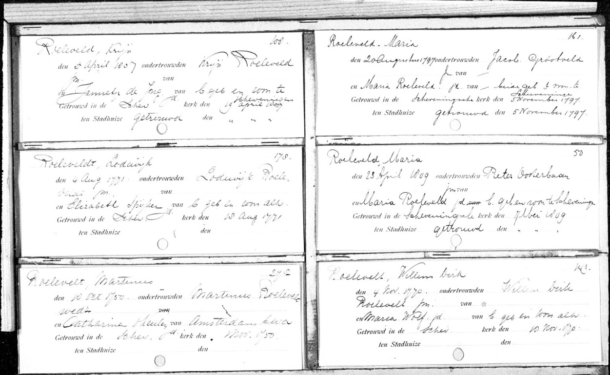 kaarten waar Roeleveld op staat. Index 8400 pagina 55 tot en met 60 gaat om trouwkaarten met de naam Roeleveld.